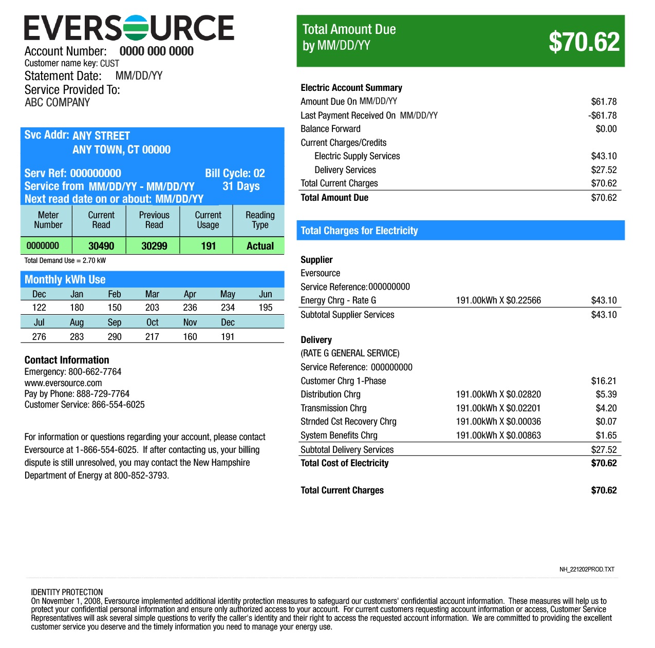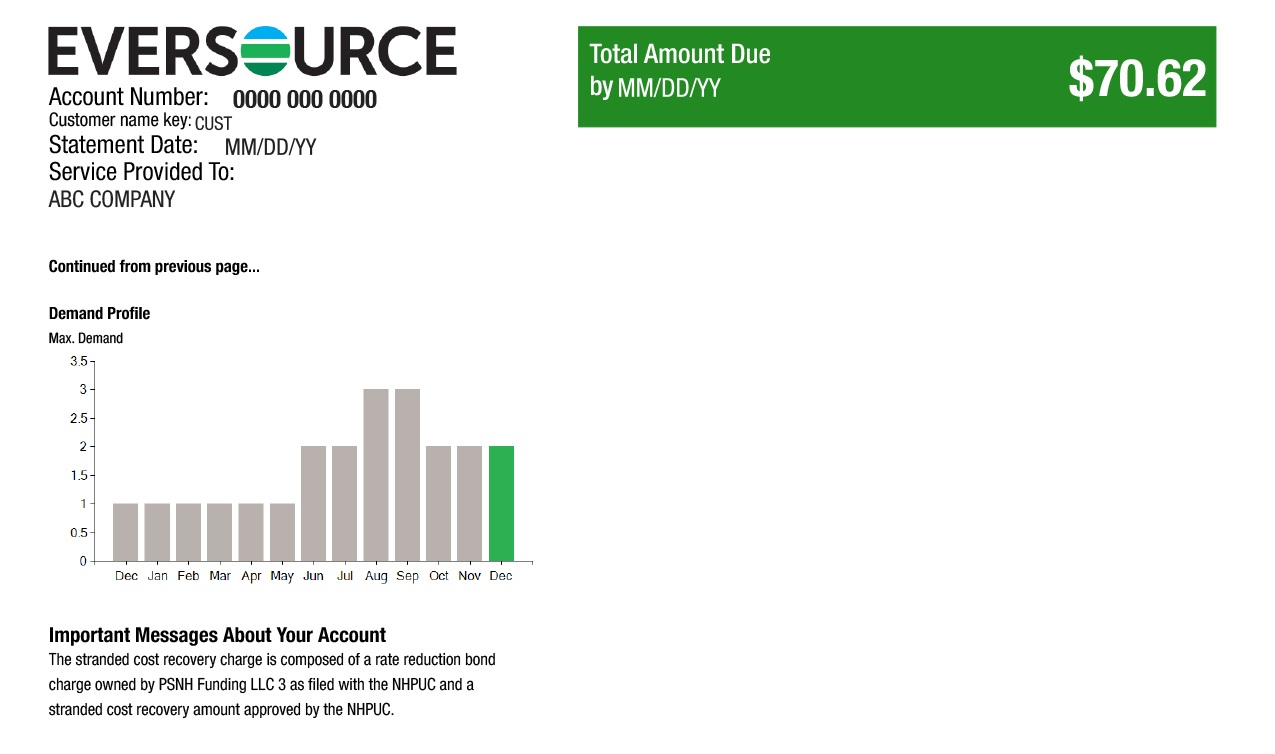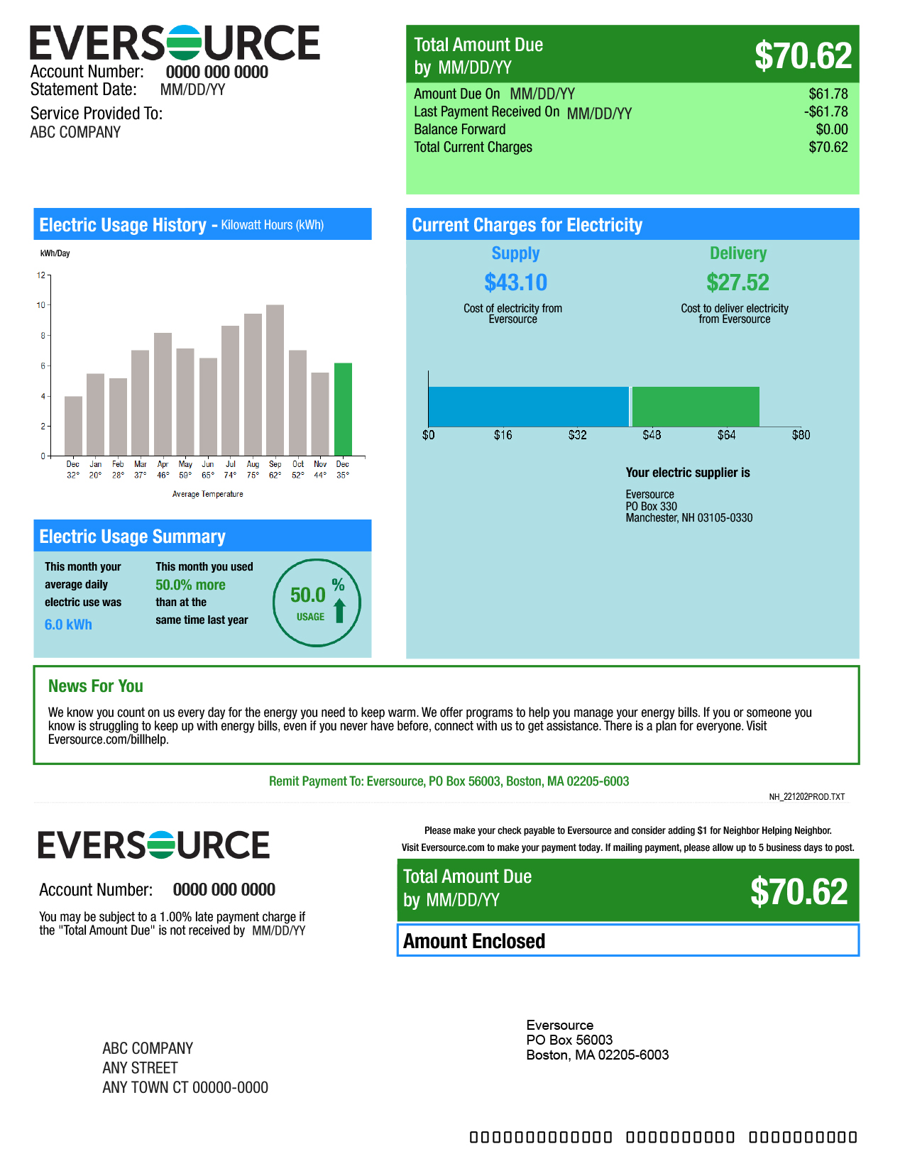 - Bill Stub: This bill stub is used if you are sending your payment to Eversource via postal mail.