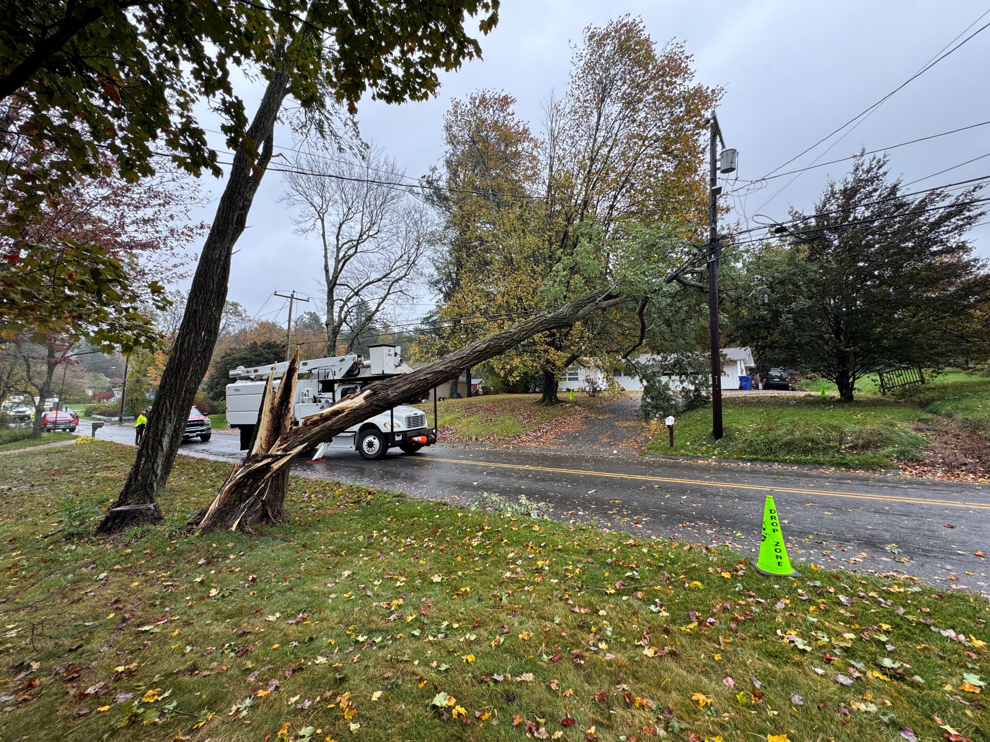 • While winds have diminished, earlier gusts of up to 50 mph and prolonged rainfall have left behind debris and flooding that may slow restoration efforts in some areas. Crews will continue working as quickly as safety permits.