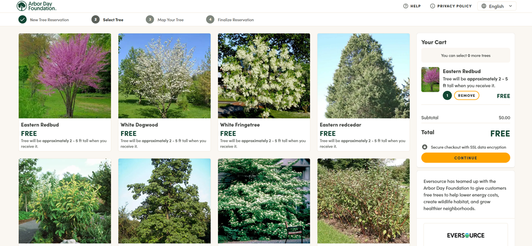 (Sample image of Arbor Day Foundation tree reservation portal)