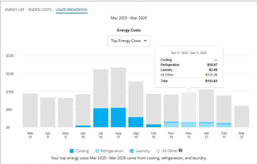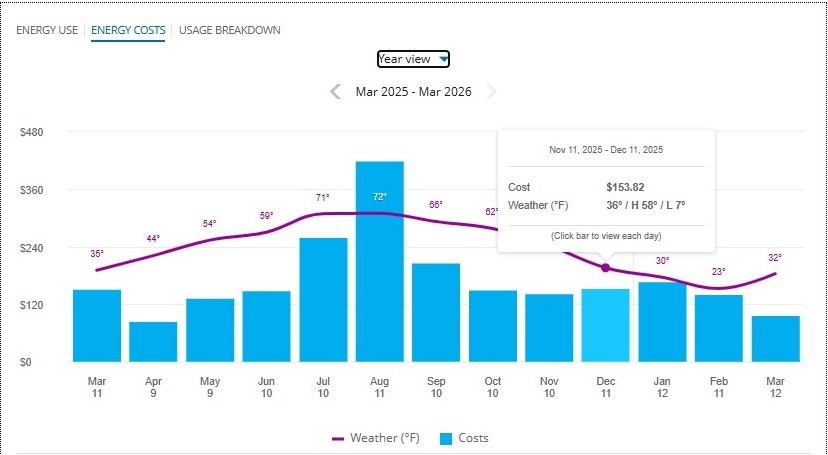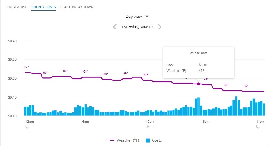 This full-screen experience provides a chart of your energy usage and costs over time.